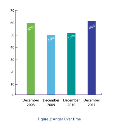 Percentage of people who say they are angry or very angry about the current economic situation. |