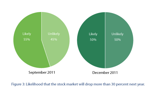 Respondents were asked, “In your opinion, what is the likelihood that the stock market will drop by more than 30 percent in the next 12 months?” |